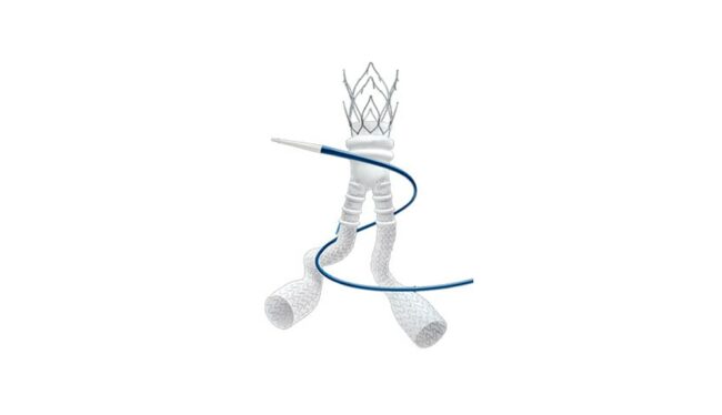 Endoprótese abdominal com sistema de selamento e baixo perfil (14FR).